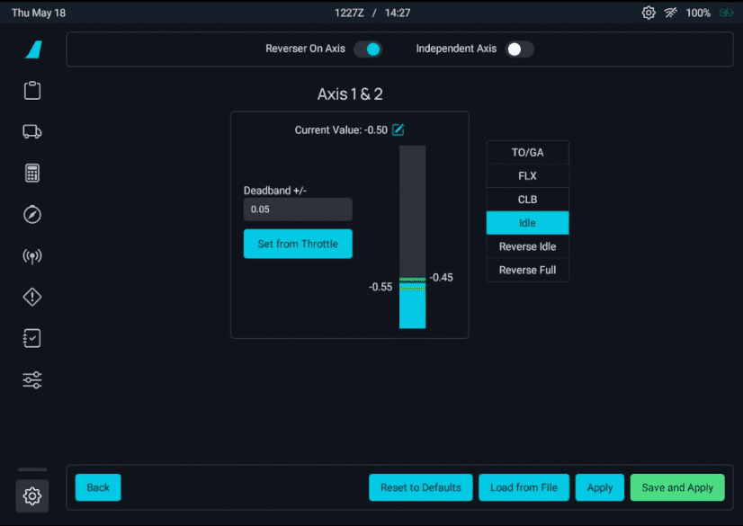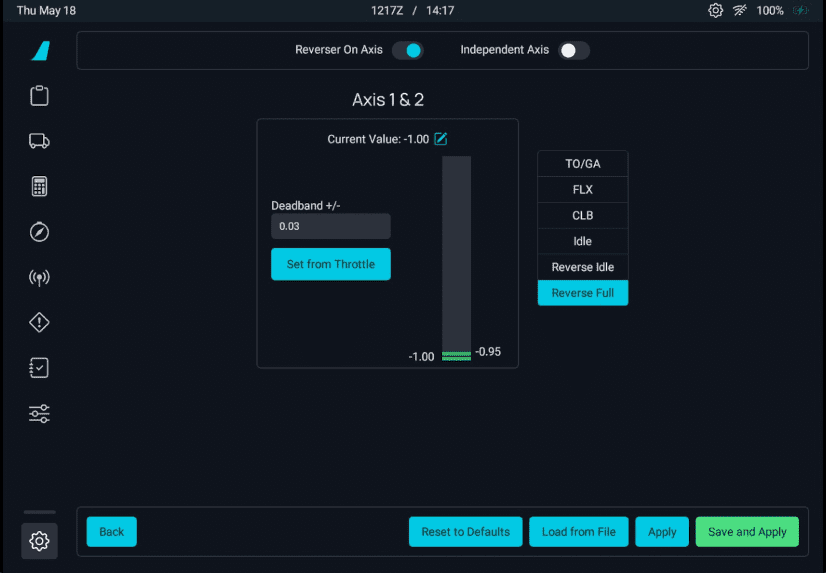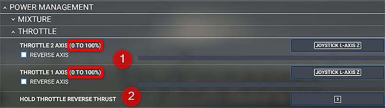 • The throttle in the cockpit should move to IDLE or FULL REVERSE when you set your controller to the lowest possible setting.
