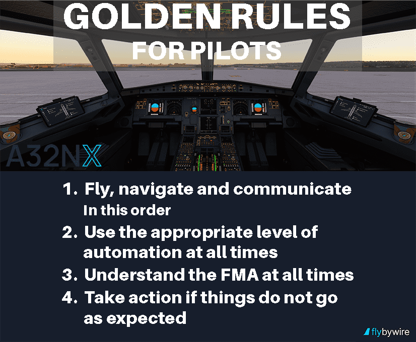 This is especially true for Auto Flight where the flight crew must monitor all instruments and the flight in general constantly, and they must be able to take over the flight manually at any moment. Always remember Airbus' Golden Rules: