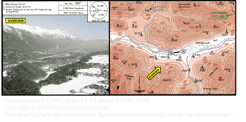 Holds are sometimes used because of topographical constraints. Innsbruck-Kranebitten International Airport (LOWI) is an excellent example of such a constraint because it is situated in a valley, as seen in the picture below.