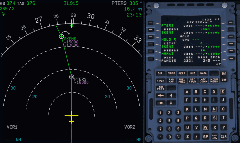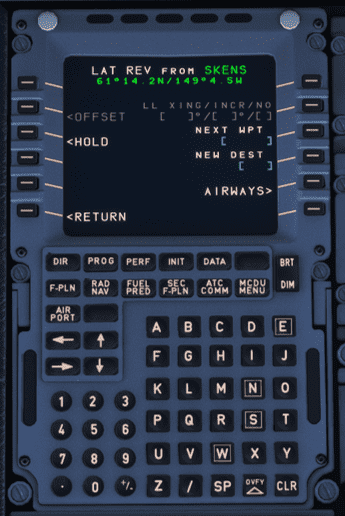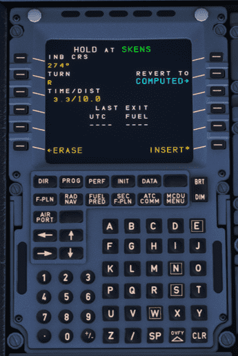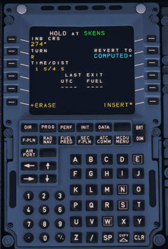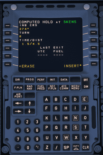 Now that all information about the hold is known, it is time to create a hold in the FMS via the MCDU. A step-by-step guide to hold at SKENS is provided below.