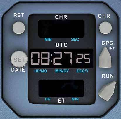 - Elapsed time (ET) (from engine startup) in hours and minutes on the lower counter.