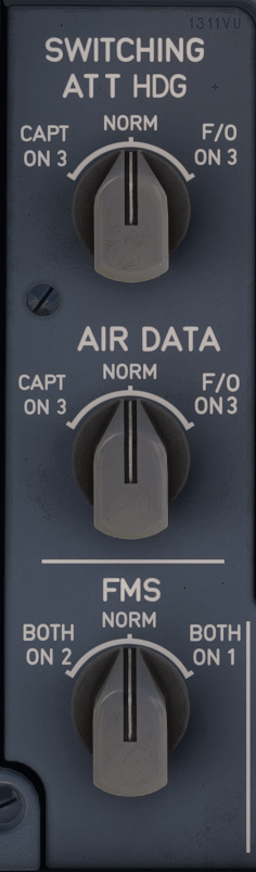 The FMS selector allows the flight crew to link all flight management interfaces on both sides with the FMC on Captain's side (when selecting BOTH ON 1), or the FMC on First Officer's side (when selecting BOTH ON 2).