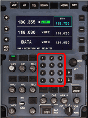 When pressed, enter numeric values (e.g. frequencies, squawk codes).
