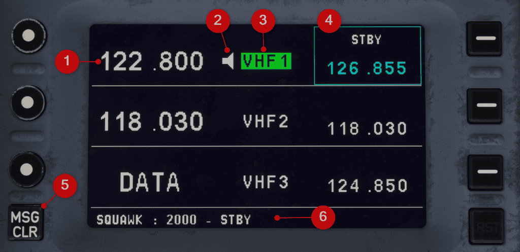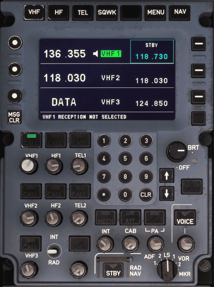 - VHF1/COM1 works well, but VHF2/COM2 only works if you turn VHF3/COM3 receive on.